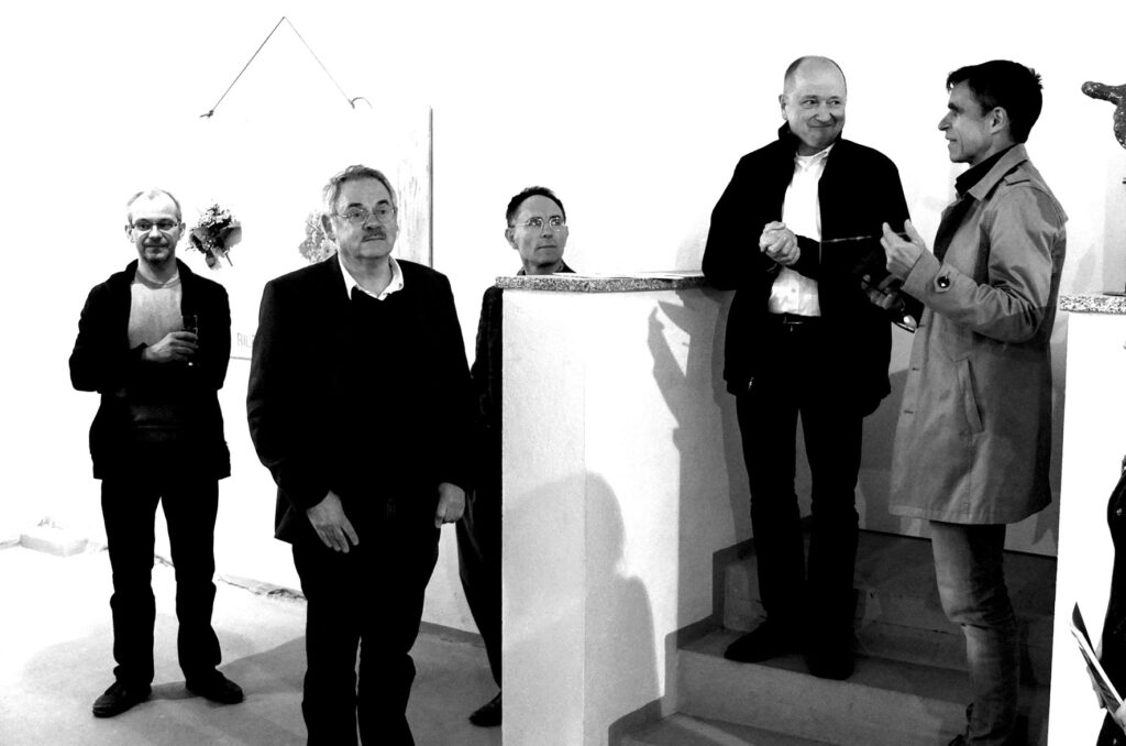 Von rechts nach links: Vorsitzender des Kunstvereins Matthias Rataiczyk, Prof. Axel Müller-Schöll, Benedikt Forster, Prof. Erwin Gross, Mathias Brockhaus